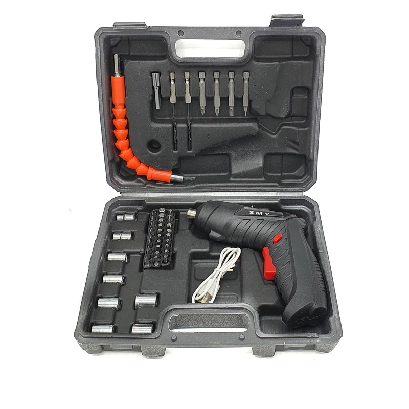 این دریل پیچ گوشتی شارژی تفنگی ۴.۲ ولت، مجهز به باتری قوی جهت اثربخشی بیشتر و عمر طولانی‌تر است. این دستگاه قابلیت چرخش بدنه دارد به طوریکه به صورت مستقیم هم قابل استفاده است. این ابزار دارای ۳۴ عدد نوک پیچگوشتی کاربردی، یک عدد رابط منعطف، دو عدد مته چوب، یک عدد رابط نوک خور و ۸ عدد بکس ۱/۴اینچ است که از مواد اولیه مناسب ساخته شده‌اند. این پیچ گوشتی برای استفاده در صنایع الکترونیک، کامپیوتر، مکانیک و مصارف عمومی مناسب است. پیچ گوشتی شارژی اس ام وای مدل ۴.۲v مجهز به سیستم ابزارگیر منحصر به فرد با گیرایی بسیار قوی حین کار است، شامل یک چراغ LED مجزا است تا بتوان از آن در محیط‌های کم‌نور و تاریک استفاده کرد و در آخر مجهز به نگهدارنده سریع پیچگوشتی یا مگنت جهت کاربری سریع و آسان است. این دستگاه دارای کابل شارژر نیز است؛ برای شارژ این دستگاه می‌توانید از تمامی شارژرهای USB‌دار مانند موبایل، کامپیوتر و ... استفاده کنید.