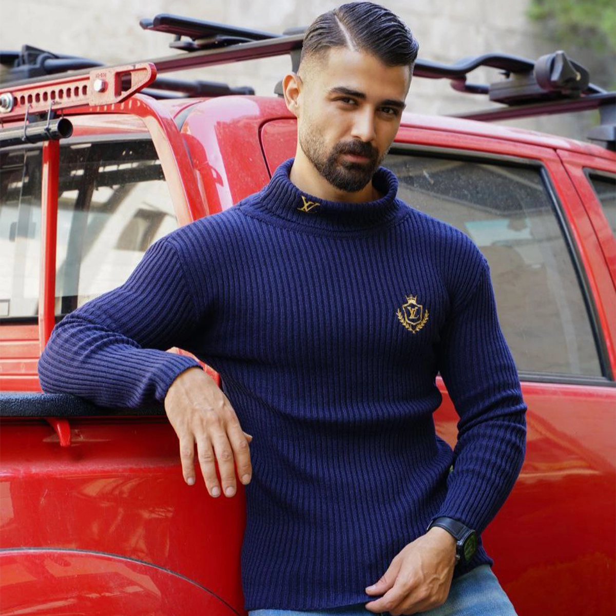 بافت یقه اسکی کبریتی مردانه سرمه ای مدل Rama