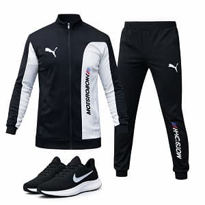 ست سوییشرت شلوار مردانه مشکی مدل MotorSport کفش ورزشی مردانه Nike مدل Tigo زیره سفید ویژه